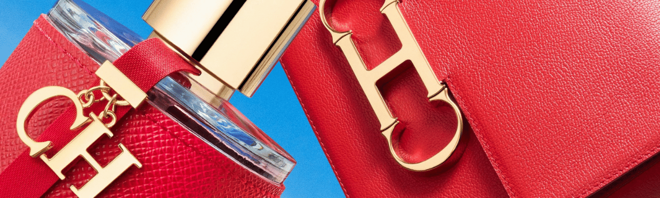 O encanto começa no frasco. Ícone da marca, ele mistura o contemporâneo e o tradicional: corpo envolto em textura que remete a couro vermelho, detalhes metálicos com ar sofisticado e o pingente CH que vira assinatura. O vermelho representa emoção e presença — marcante, elegante e atemporal.